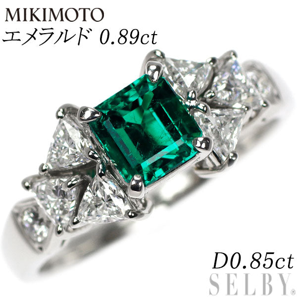 ミキモト Pt950 エメラルド ダイヤモンド リング 0.89ct D0.85ct