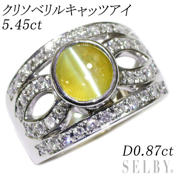 Pt900 クリソベリルキャッツアイ ダイヤモンド リング 5.45ct D0.87ct