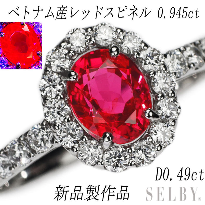 新品 Pt950 強蛍光 ベトナム産レッドスピネル ダイヤモンド リング 0.945 D0.49ct【エスコレ】