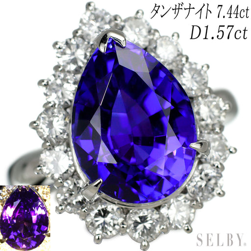Pt900 上質タンザナイト ダイヤモンド リング 7.44ct D1.57ct 商品説明 夕暮れ時の空を映し出したような青紫の宝石、タンザナイト。見る角度や光の具合によって見え方が変わる多色性も持つ神秘的なストーン...