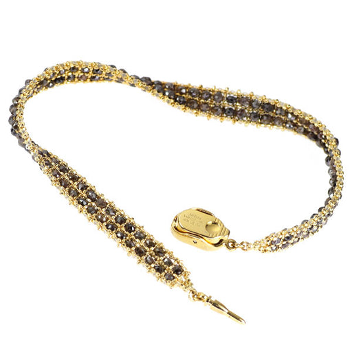 詳細を全部見るK18YG/ SV ダイヤモンド ブレスレット 商品説明 ビーズカットのダイヤモンドをイエローゴールドのチェーンで編み込んだ、エレガントなブレスレットです。 ダイヤモンドは、濃厚なブラウン~ブラック系の色合いで、全体的...