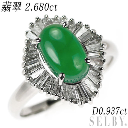 詳細を全部見るPt900 翡翠 ダイヤモンド リング 2.680ct D0.937ct 商品説明 天然ヒスイとダイヤモンドをセットした、エレガントなプラチナリングです。メインの天然ヒスイは、縦約10.2mm×横約6.2mmのカボシ...