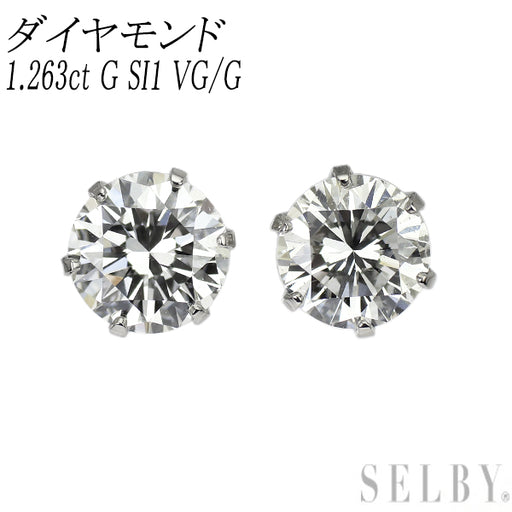 詳細を全部見る新品 Pt900 ダイヤモンド ピアス 1.263ct G SI1 VG/G スタッド【エスコレ】 商品説明 中央宝石研究所のソーティング付き、0.644ct、0.619ctのダイヤモンドをセットした、プラチナスタッ...
