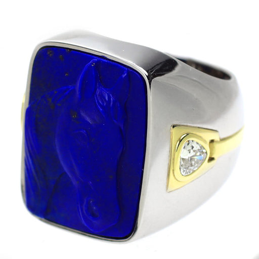 Pt900/K18YG ラピスラズリカメオ ダイヤモンド リング D0.51ct 馬 印台