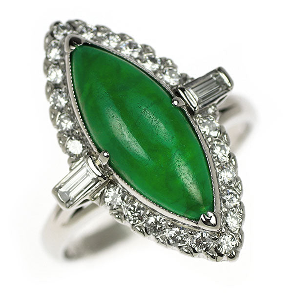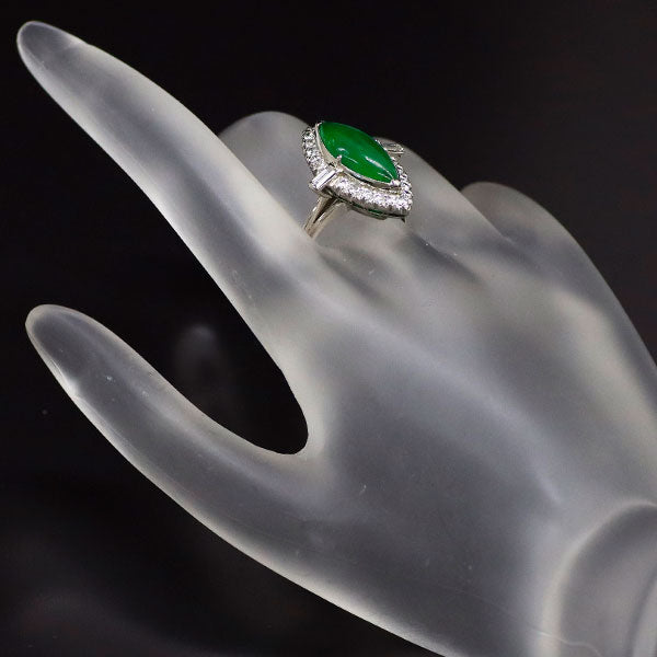 Pt900 Jade Diamond Ring, Vintage Carved Product, Senbon-kashi