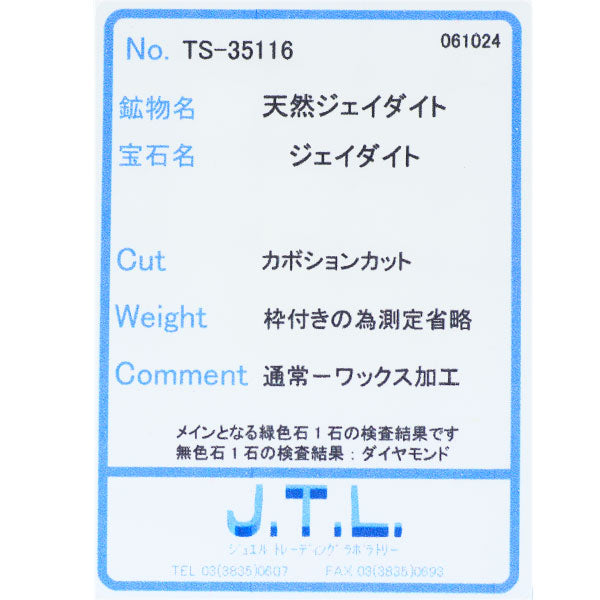 | Pt900 Jade Diamond Ring, Vintage Carved Product, Senbon-kashi | |