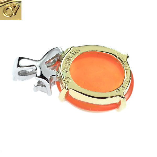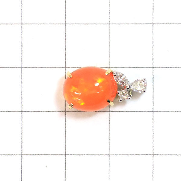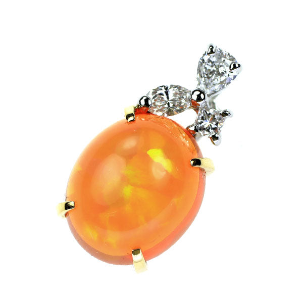 クレサンベール K18YG/Pt950 再結晶ファイアーオパール ダイヤモンド ペンダントトップ 3.25ct D0.25ct
