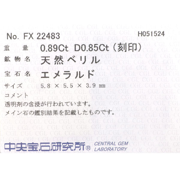 | ミキモト Pt950 エメラルド ダイヤモンド リング 0.89ct D0.85ct | |