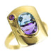 | 商品説明 | 半円形のアメジストとブルートパーズをセットした、ユニークなイエローゴールドリングです。 お指にしっくりと馴染むようにデザインされた、艶やかな鏡面光沢のラインが印象的。 お互いを美しく引き立て合う、反対色ならではの華やかでモダンなカラーストーンジュエリーをお楽しみください。 |