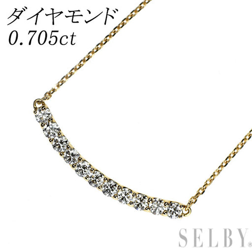 View full detailsK18YG ダイヤモンド ペンダントネックレス 0.705ct 商品説明 曲線のバーにトータル0.705ctの上質ダイヤモンドを連ねた、イエローゴールドのペンダントネックレスです。 シンプルなデザインで様々な装いに...