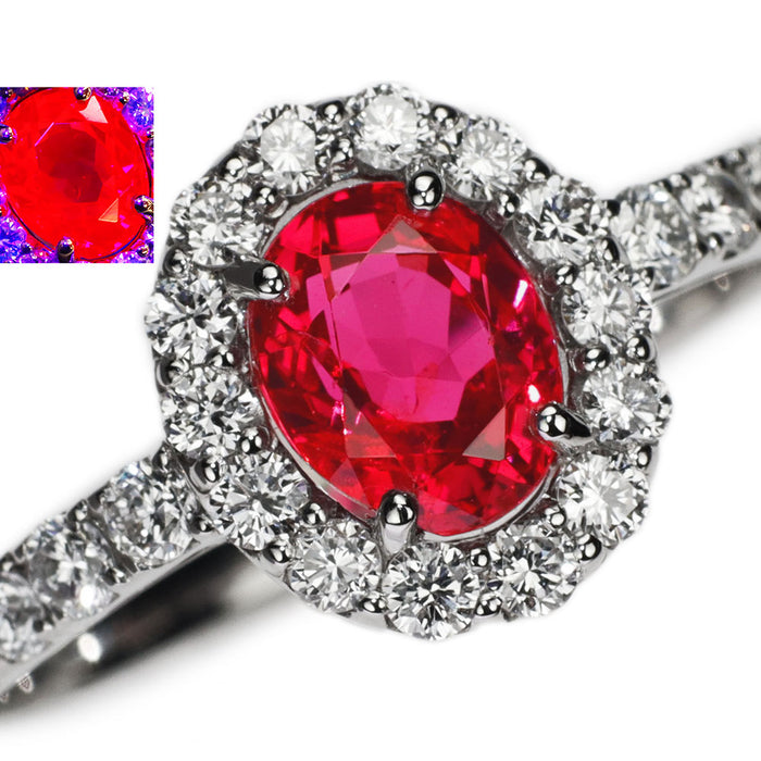 新品 Pt950 強蛍光 ベトナム産レッドスピネル ダイヤモンド リング 0.945 D0.49ct【エスコレ】