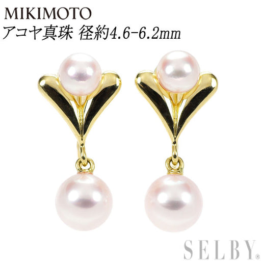 ミキモト K18YG アコヤ真珠 イヤリング 径約4.6-6.2mm