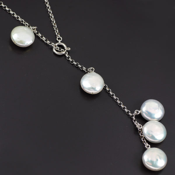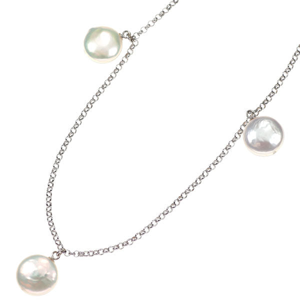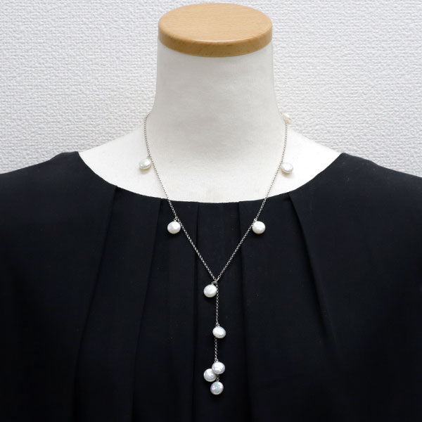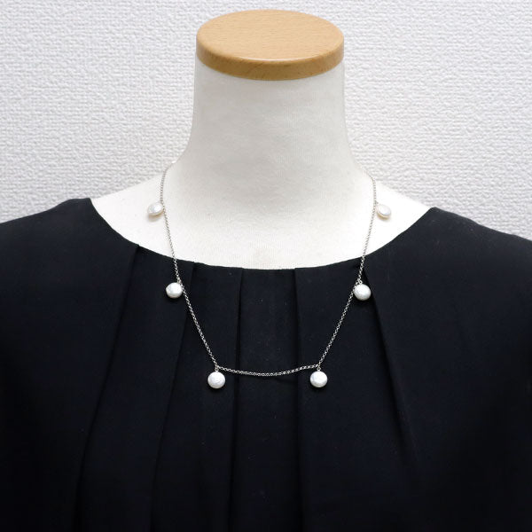 商品説明 ボタンシェイプの淡水パールを等間隔に飾った、ホワイトゴールドのエレガントなステーションネックレスです。