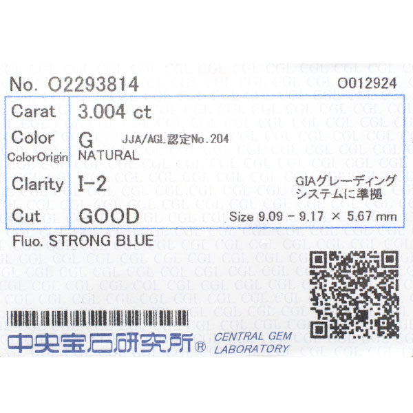 | クラリティ | AA(拡大するとテーブルに傷のあるピースあり) |