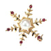 | K14PG アコヤ 真珠 ルビー ブローチ兼ペンダントトップ 径約7.2mm 雪の結晶 | |
